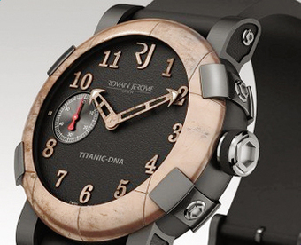 Die Genfer Marke Jerome Jerome lanciert diese unglaubliche Uhr mit dem Namen " Titanic-DNA " als erste einer langen Liste von Uhren, die aus legendären und ungewöhnlichen Materialien hergestellt werden. Die Lünette Stahl oxydà © © à © e erstellt durch eine Schmelzbindung authentischen Stahl der à © ebnet den T itanic , die von 3800 gît Boden Meter, und die der Zukunft  „Titanic IIa “. Das schwarze Zifferblatt wurde aus Kohle hergestellt, die im legendären Wrack gesammelt wurde.